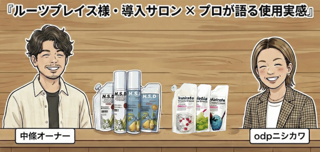この度、宮崎県ODP代理店様の井戸川様、工場(㈱活亜興の大久保社長)ODP(西川、吉田)にて、ルーツプレイス様のミスト&ミルクの取材をさせていただきました
